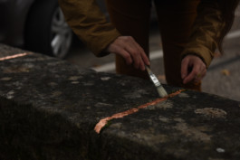 L’utilisation de l’or et du cuivre, en deux techniques et deux formes, crée une conversation subtile entre l’artifice des constructions humaines et la pureté des environnements naturels. Les mousses et lichens existants sont soigneusement préservés, tandis que les surfaces minérales libres accueillent des feuilles d’or, donnant naissance à des compositions uniques générées par le hasard.